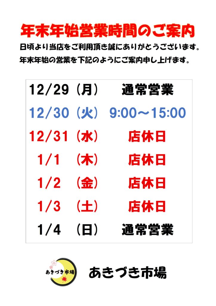 日頃より当店をご利用頂き誠にありがとうございます。年末年始の営業を下記のようにご案内申し上げます。